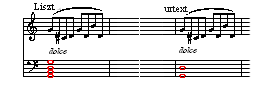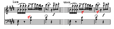 302小節 リスト版は8分音符Eを取り除いている。